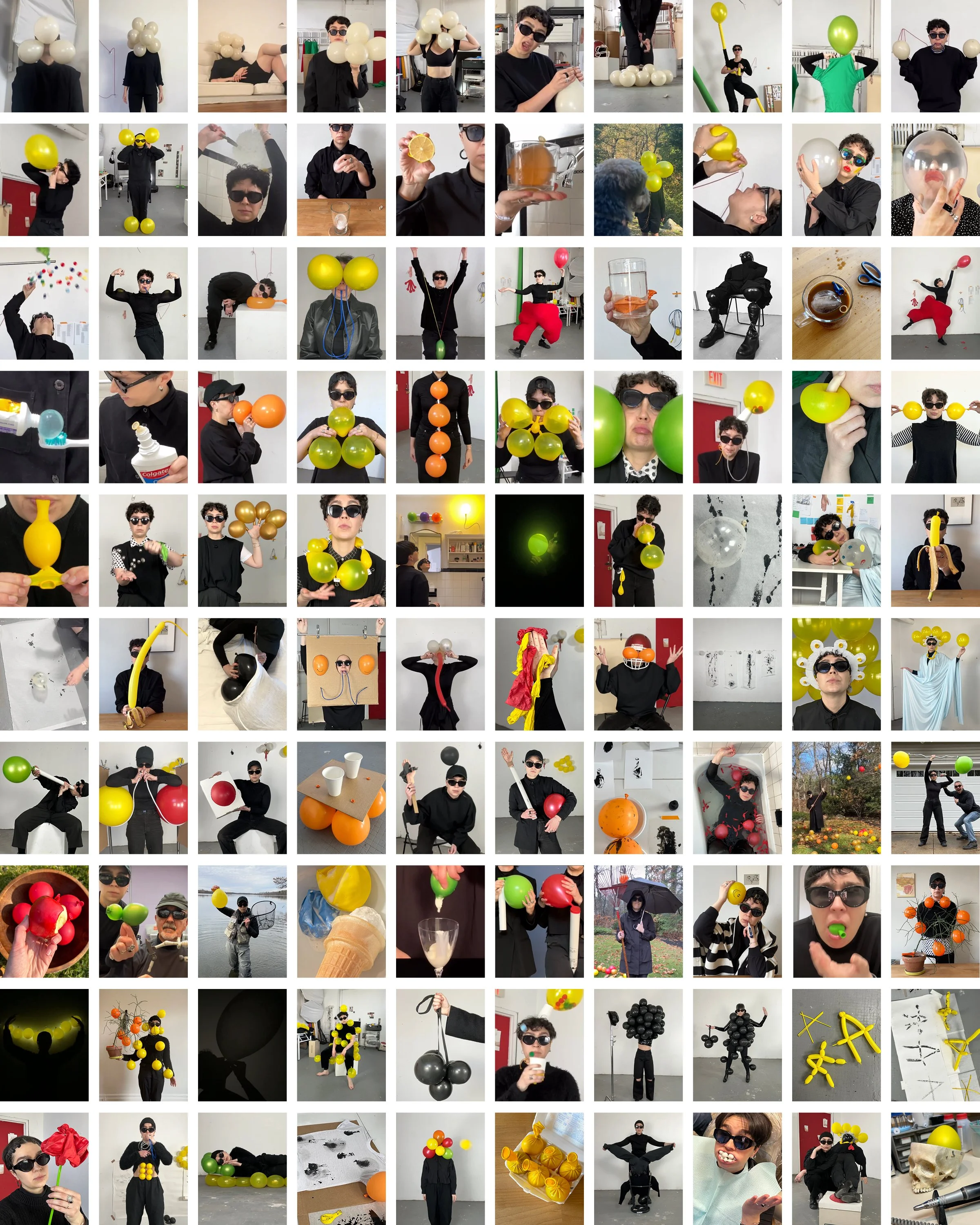 “100 Days of Balloons” is a durational performance (100 days in a row) and deep study on affordances, having fun, transformation, and beating a dead horse until it is reborn as an inflatable one. In this work, I challenged myself to create 100 days of consecutive performances examining the action possibilities of a balloon.