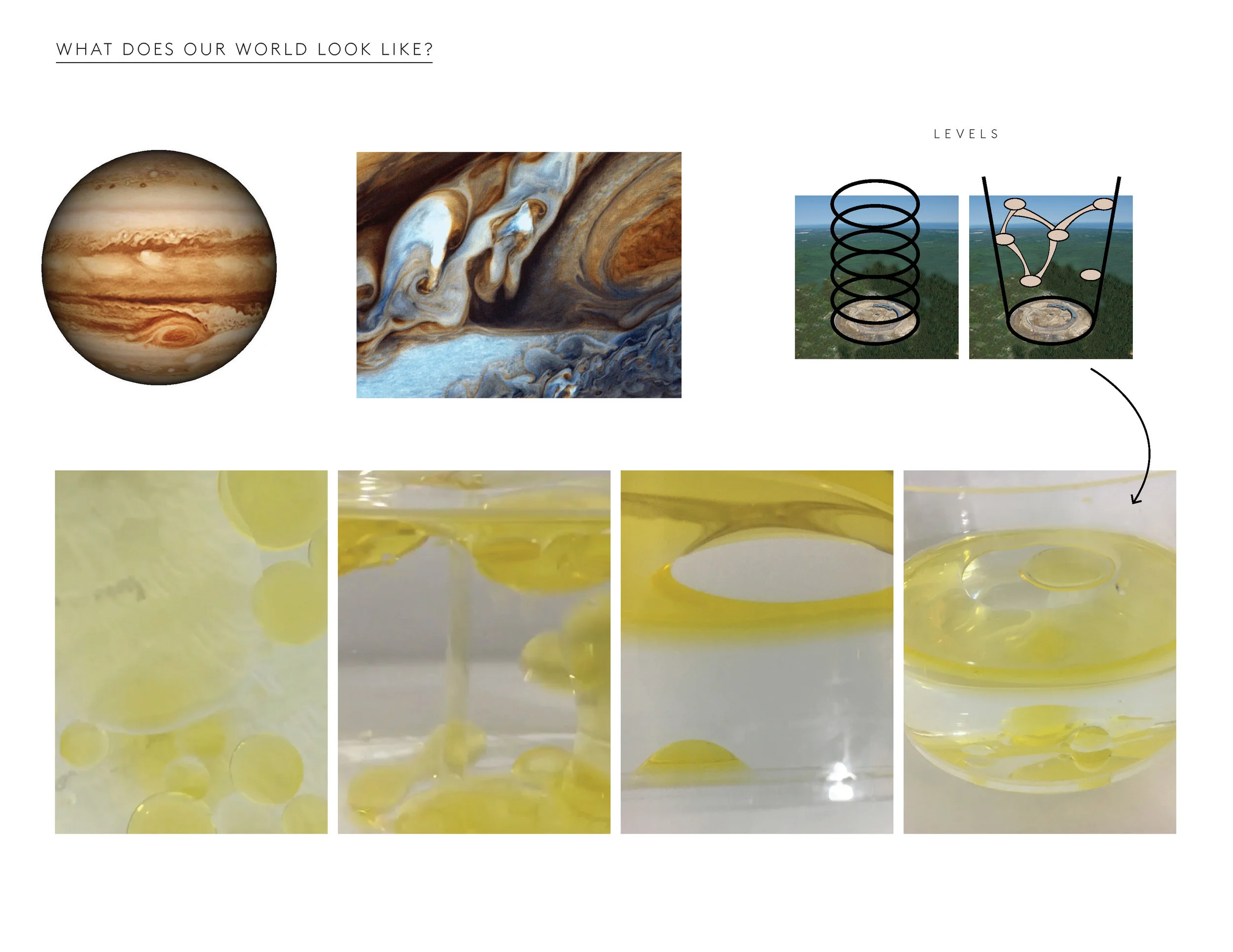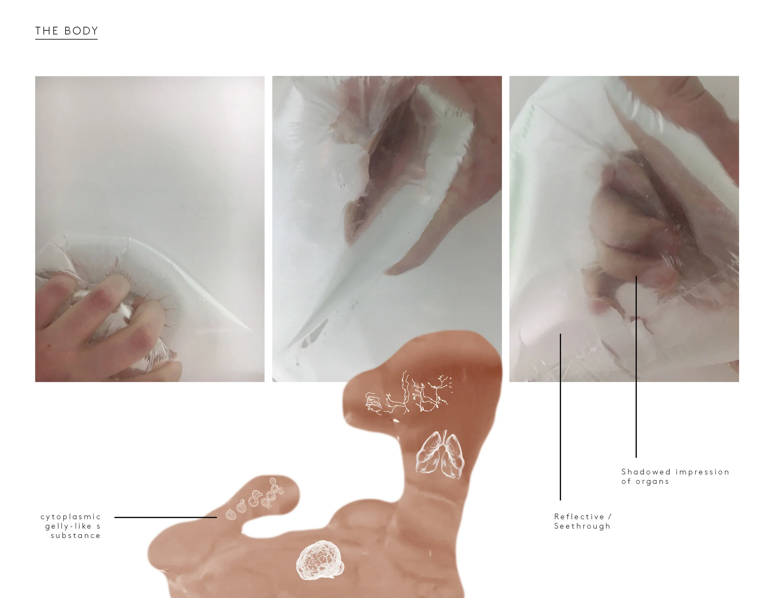 A hypothetical world in the future where our bodies have expanded and we are living in a cytoplasmic-like jelly. The world mirroring the structure of a single cell.